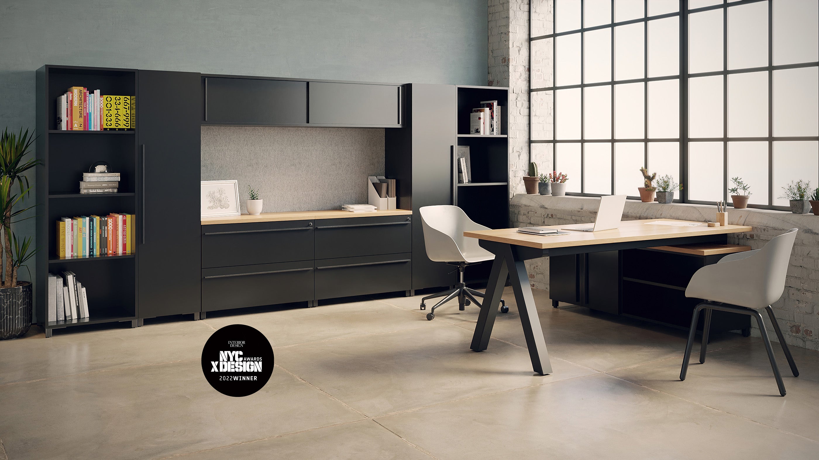 Designed with minimal and classic proportions, Minim Private Office brings a residential look and feel to the office while delivering personal design and function. The system includes freestanding and integrated desks, casegood storage, open shelving, work walls, all customizable.