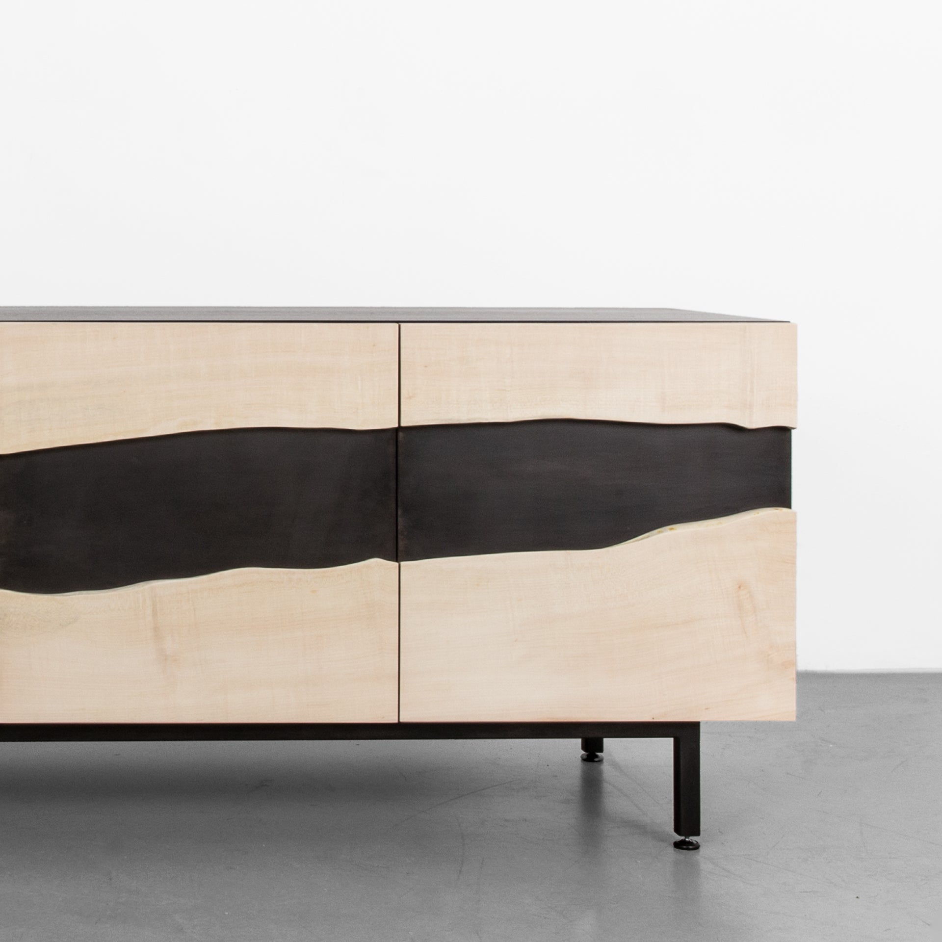Featuring live edge wood faces, Uhuru's signature Summit Credenza design has been expanded into a flexible workplace storage system that includes a range of heights and lengths, along with add-on accessories including a glass top, AV cutouts, a trash drawer, and more.