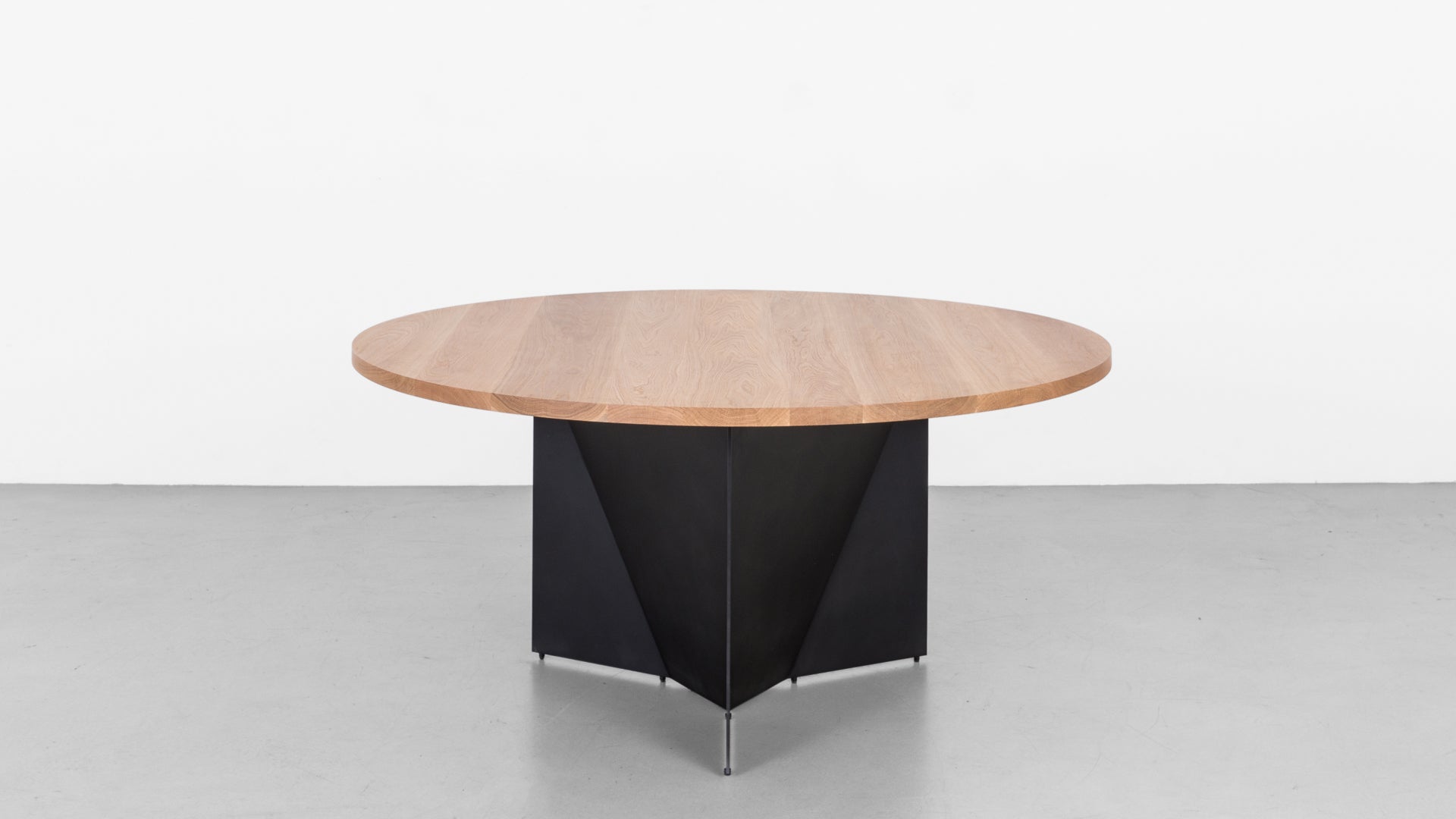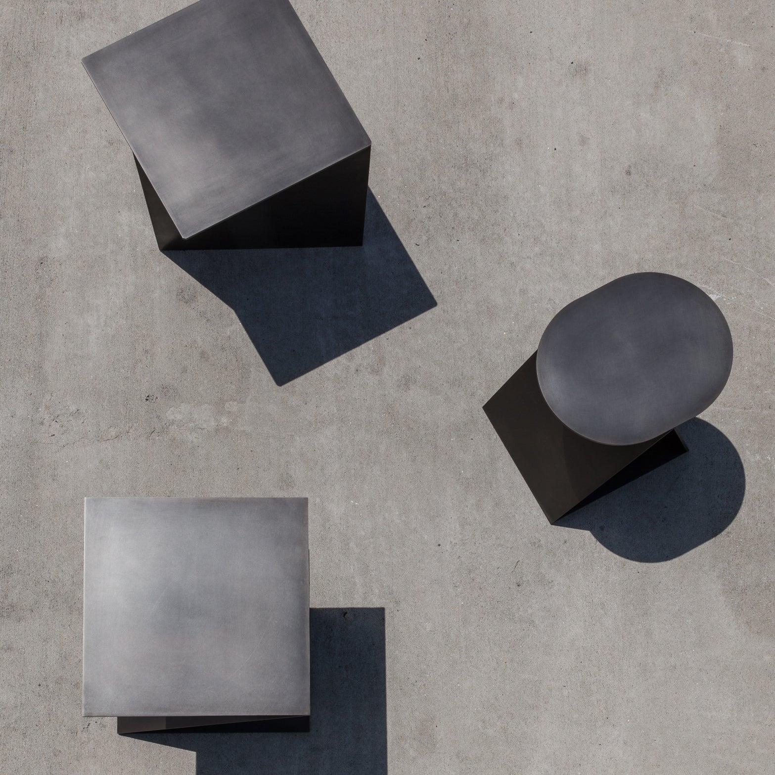 Inspired by minimalist artists, our Tack Collection emphasizes the raw texture and quality of hand-blackened steel through elegant and deliberate forms. Each piece, with its varying planes and angles, interacts with light differently, revealing each plate's nuances in texture, edge quality, and materiality.