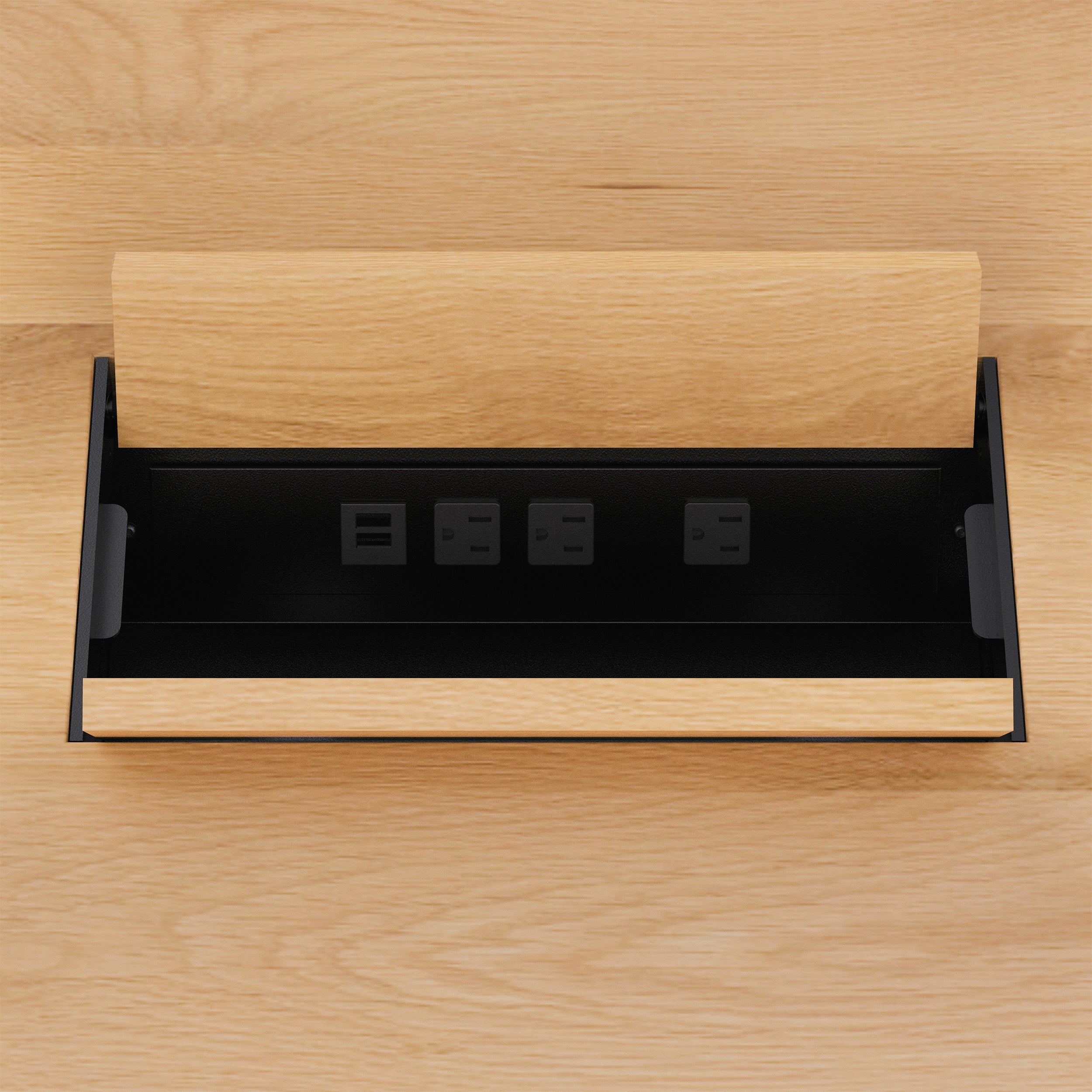 Perimeter Power is available on the Minim Conference System—bringing discreet, individual access to power and connectivity for every seat at the table. Mounted seamlessly to the apron, it keeps surfaces clean and conversations uninterrupted.