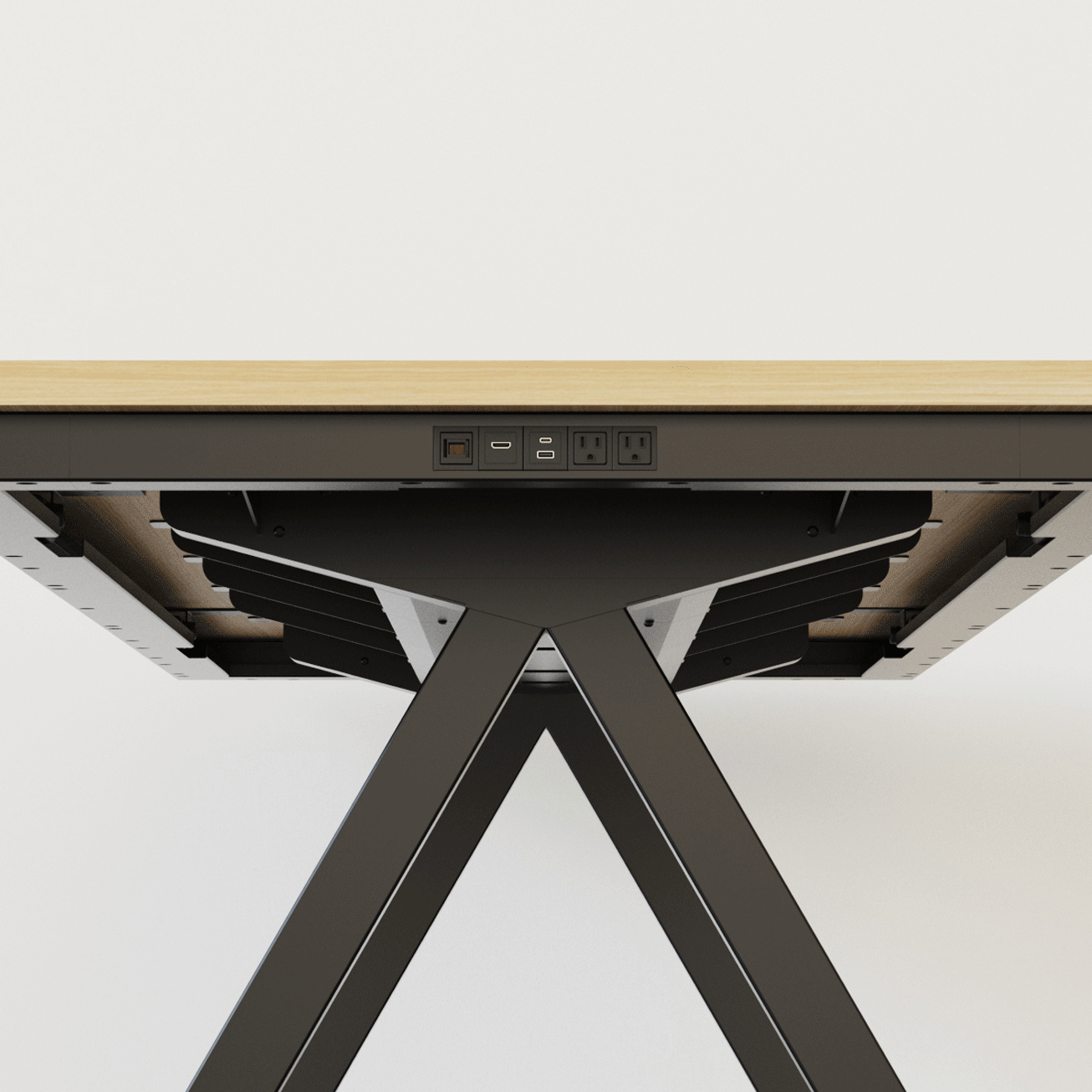 Our award-winning Minim Conference System is equipped with clever power and data integrations, with options for concealed tabletop ports and wire management hidden in the base. Keeping true to our roots, our tables are built from sustainably harvested hardwoods and are fabricated from recycled steel.